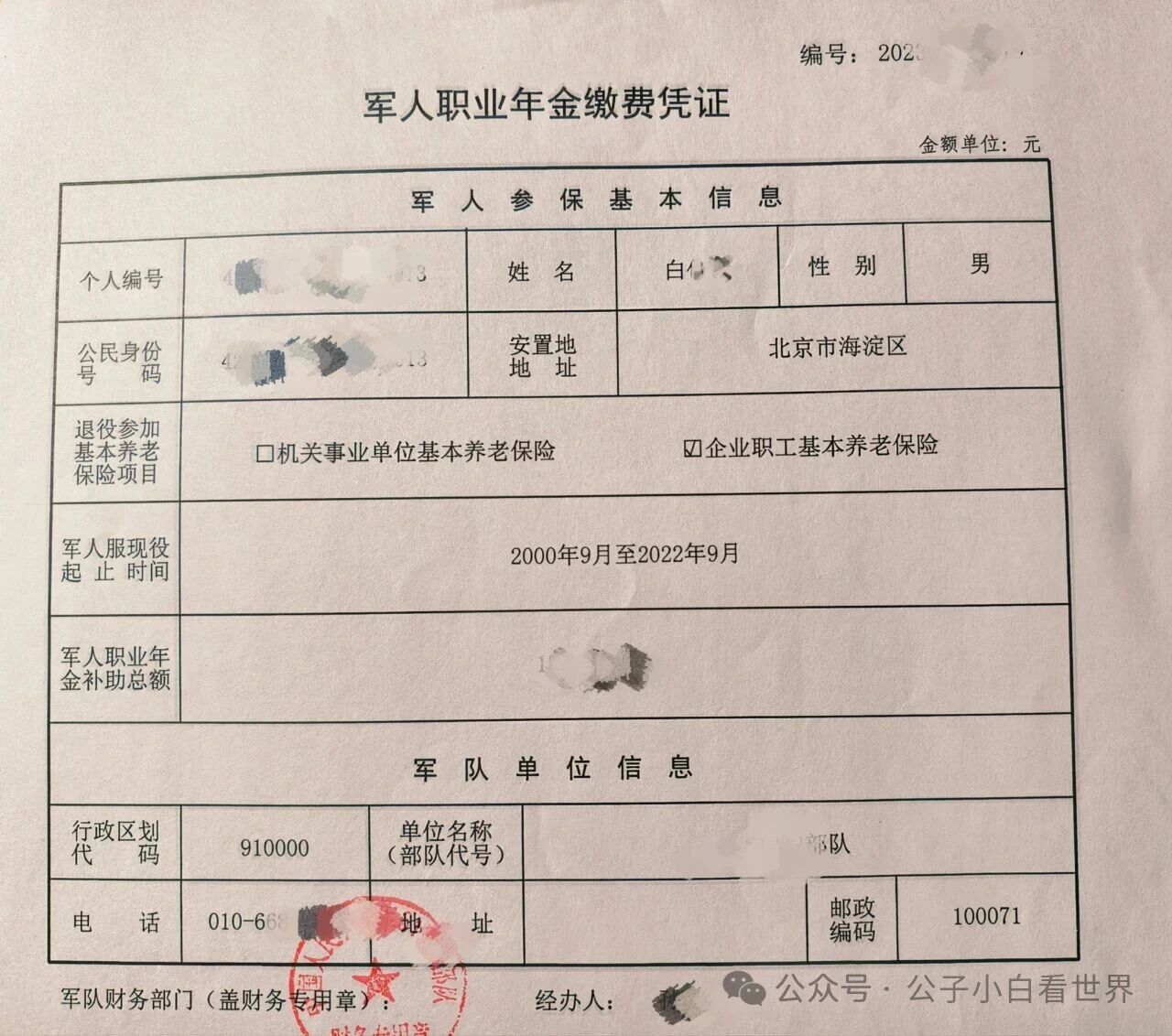 (说明一下,公子是2021年的退役计划,2022年3月下达命令,之后半年由部队继续保障。可以理解为给你半年时间找工作,其间发低保,所以服役时间写了个2022年9月。年金时间从2014年10月起算,重点只看转接总额,不像社保非常在意缴费年限。)